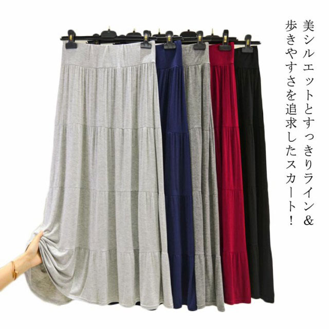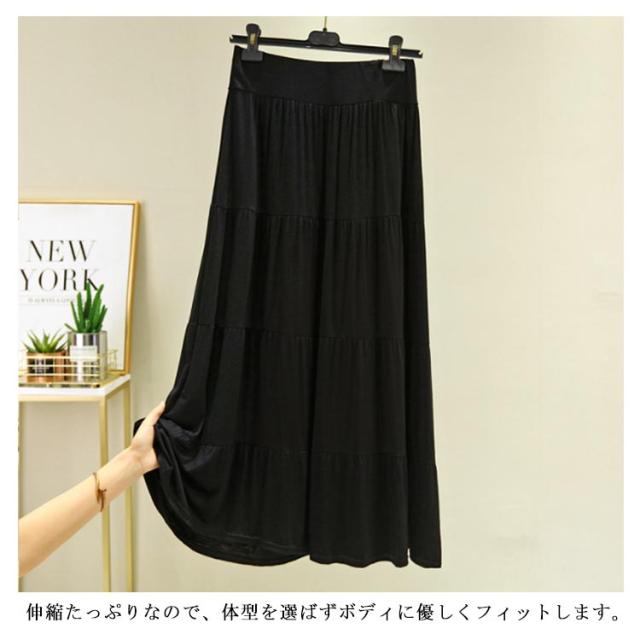 フリルロングスカート aラインスカート スカート フレアスカート ロングスカート 大人 可愛い レディーススカート ロング マキシ スカート ゆれゆれ