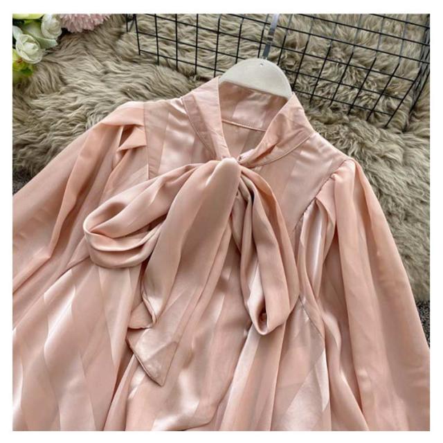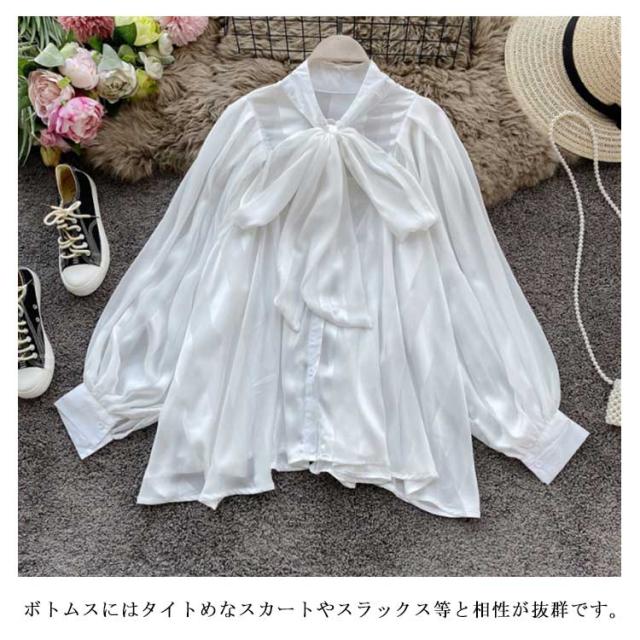 ブラウス フォーマル レディース ブラウス シャツ リボン リボンタイ 白 シャツ 光沢 高級感 長袖 チュニック オフィス カジュアル ホワイト 結婚式 パーティー お呼ばれ 二次会 可愛い 事務服 大人 トップス シャツ 送料無料