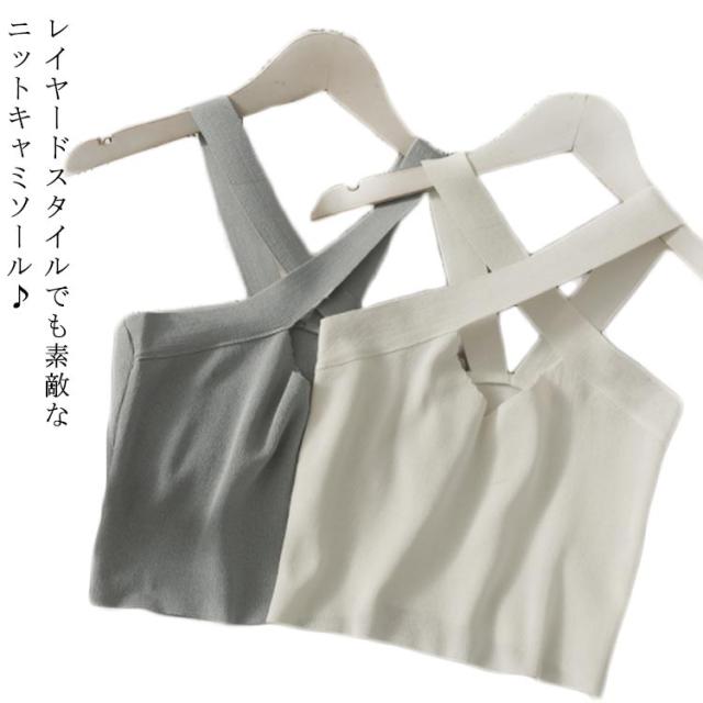 ニットキャミソール ニット トップス ニットキャミ Vネック 重ね着 レイヤード インナー タンクトップ ノースリーブ 大人 ゆったり ゆとり 春秋 秋冬 送料無料