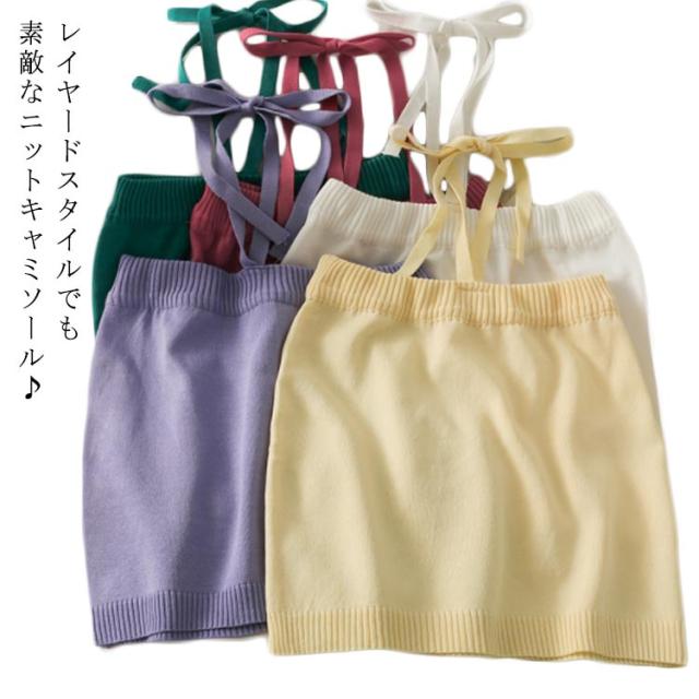 ニットキャミソール ニット トップス リボン ニットキャミ 重ね着 レイヤード インナー タンクトップ ノースリーブ 大人 ゆったり ゆとり 春 秋 夏 送料無料