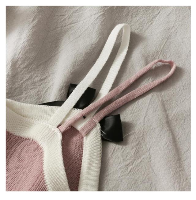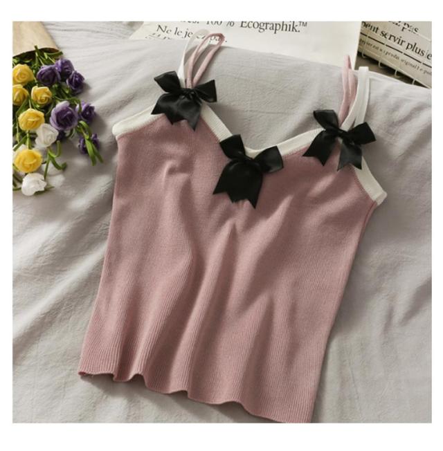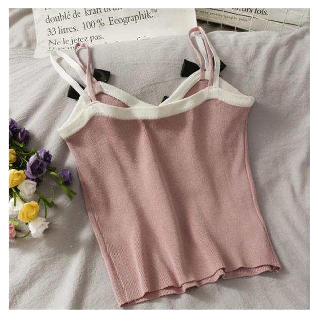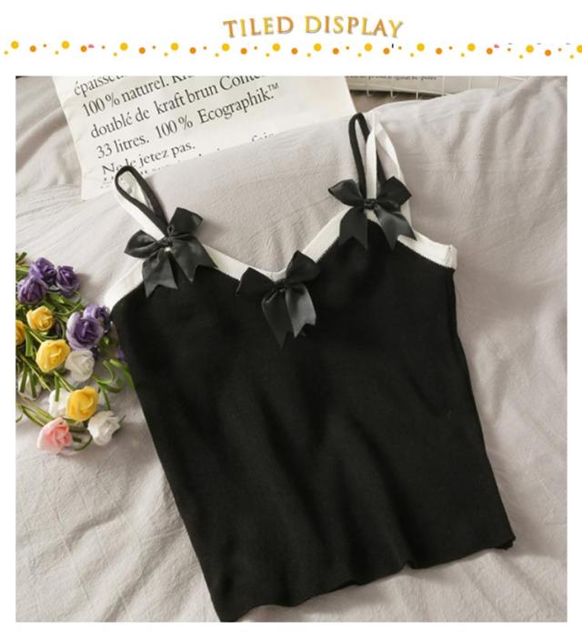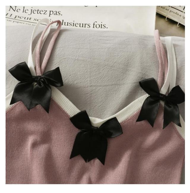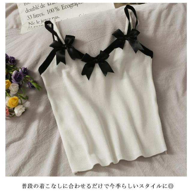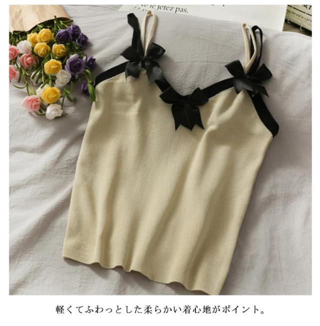 ニットキャミソール ニット リボン トップス リボン ニットキャミ 重ね着 レイヤード インナー タンクトップ ノースリーブ 大人 ゆったり ゆとり 春 秋 夏 送料無料