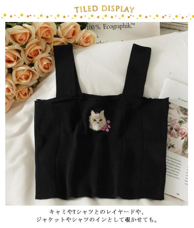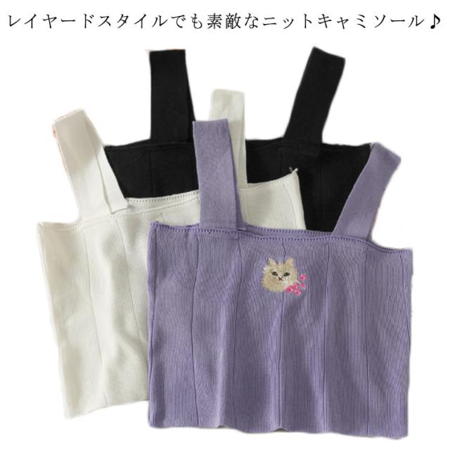 ニットキャミソール ニット 刺繍 トップス ニットキャミ 重ね着 レイヤード インナー タンクトップ ノースリーブ 大人 ゆったり ゆとり 春秋 秋冬 夏 送料無料