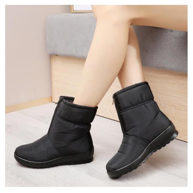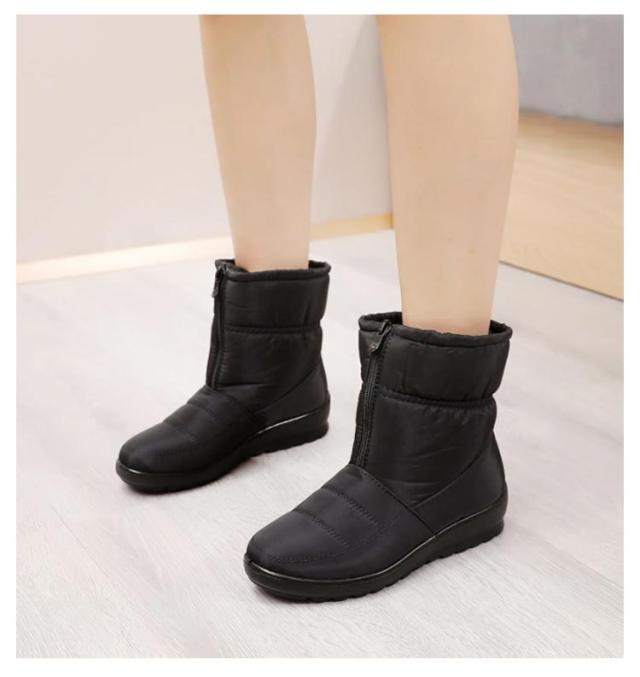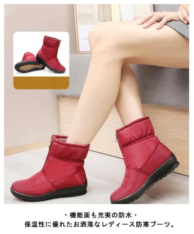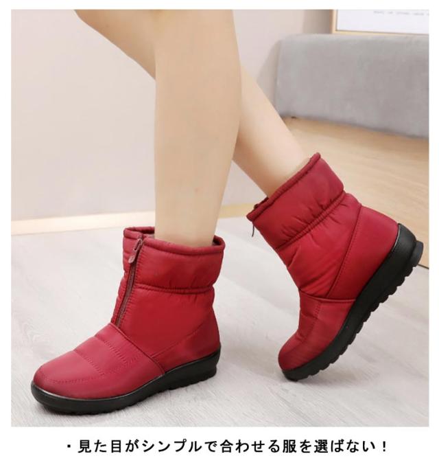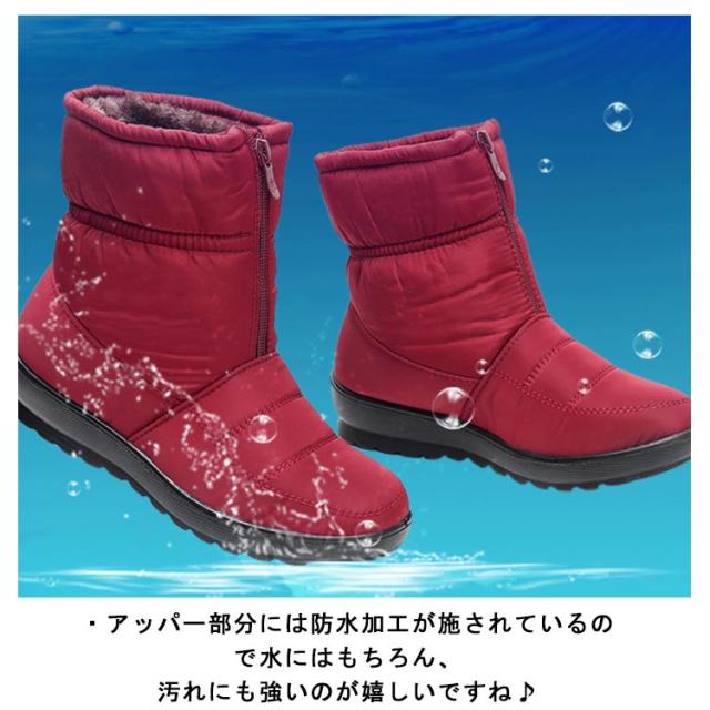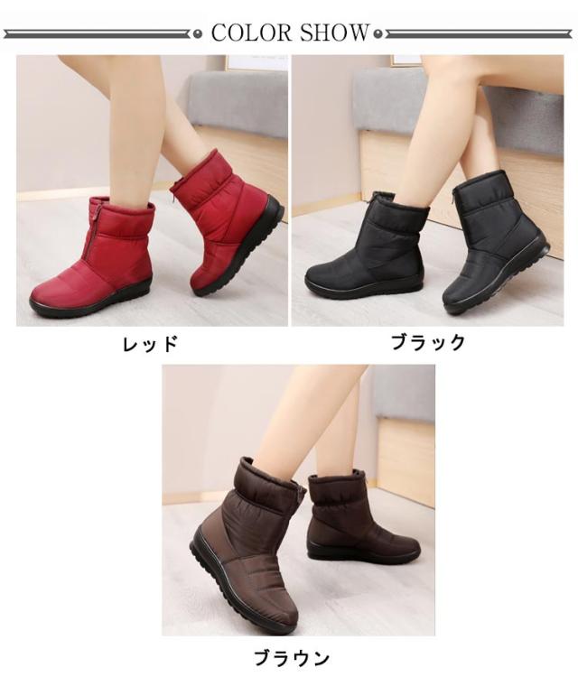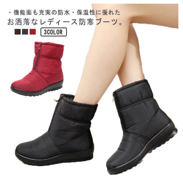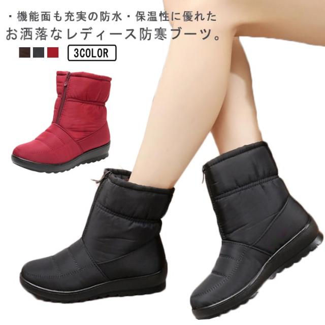 レディース防寒ブーツ スノーブーツ スノーシューズ 防水 冬靴 ボアシューズ 裏起毛 フロントジップ レディース 滑りにくい 軽量 無地 全3色