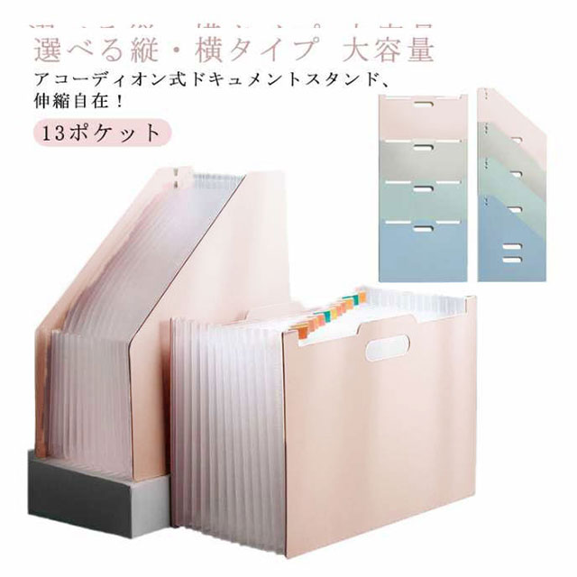 ドキュメントスタンド A4 13ポケット ファイルボックス ファイル ケース 書類 収納 大容量 おしゃれ 書類ケース ファイルケース ファイルスタンド 収納ボックス ドキュメントファイル 整理整頓 自立 仕切り アコーディオン式 学校 プリント シンプル 送料無料