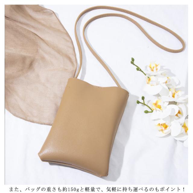 | 「スマホや小銭入れ、鍵など必要最小限の持ち物だけでお出かけしたい」そんな声にお応えするショルダーバッグです。 とってもシンプルでかわいいスマホポシェット。 無駄なロゴや文字を省きどんな服装にも合うようなデザインになっています。 素材はしっとりとした肌触りが特徴の、上質なPUレザー(フェイクレザー)を厳選して使用しております。 また、バッグの重さも約150gと軽量で、気軽に持ち運べるのもポイント! | |
