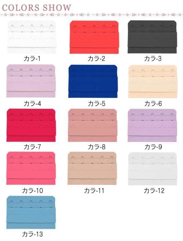 延長ホック ブラジャー用 選べる13色 調整ホック 4段5ホック アジャスター レディース ブラホック 下着 マタニティ アンダーサイズ 妊娠 出産準備 送料無料