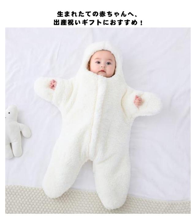 | ふわふわモコモコ♪あったかおくるみ。 厚手で保温力は抜群です。 赤ちゃんの足を入れて、シッパーをあげるだけの簡単着脱! 手足も隠れて、全身を覆うので、 お家の中でのお昼寝、パジャマ、旅行、お出掛け等様々なシーンで使えます。 生まれたての赤ちゃんへ、出産祝いギフトにおすすめ! | |