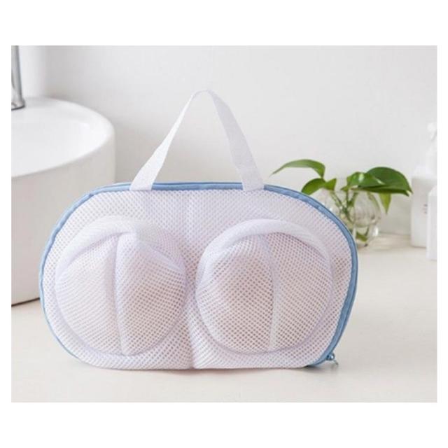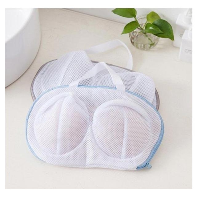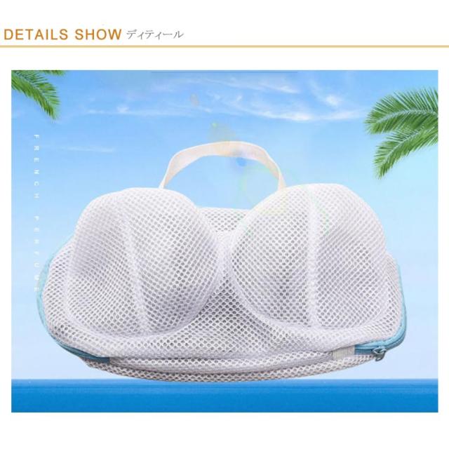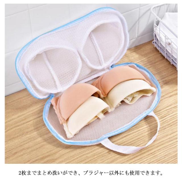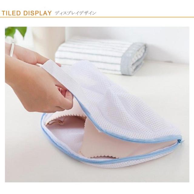 | そのまま干せて手間いらず!ブラジャー用洗濯ネット! ブラジャーの形に合わせやすい立体設計だから、ブラジャーの型崩れを防いでくれます。 紐付きので、ネットに入れたまま干すこともできるのも嬉しいポイント。 メッシュ素材が糸くずや絡みからブラジャーをやさしく守ります。 ファスナーカバー付きなので、他の洗濯物や洗濯槽を傷つけることもないです。 2枚までまとめ洗いができ、ブラジャー以外にも使用できます。 | |