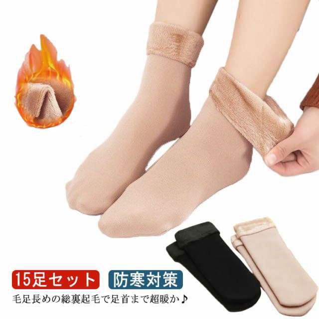 15足セット!冷えとり靴下 裹起毛 ソックス レディース あったか ソックス 裏ボア 温かい ルームソックス 靴下 くつ下 女性 レディース メンズ ストレッチ 防寒対策 保温 暖かい 冬 足冷え 極厚 男女兼用 黒 ブラック ベージュ 抗菌防臭 送料無料