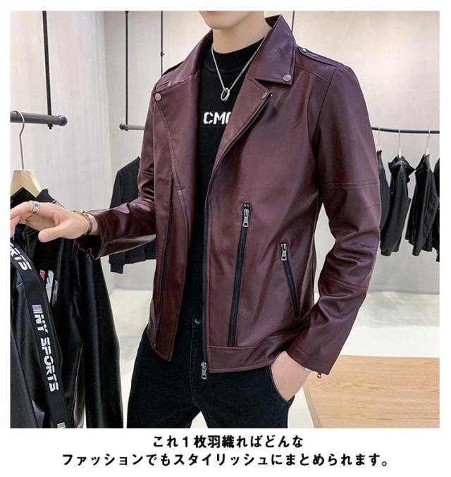 ライダースジャケット メンズ ダブル 細身 フェイクレザー スタジャン ジャケット ブルゾン フェイクレザージャケット レザージャケット PU 合皮 ジップアップ ブルゾン カジュアル アメカジ バイカー 韓国系 秋 冬 服 お洒落