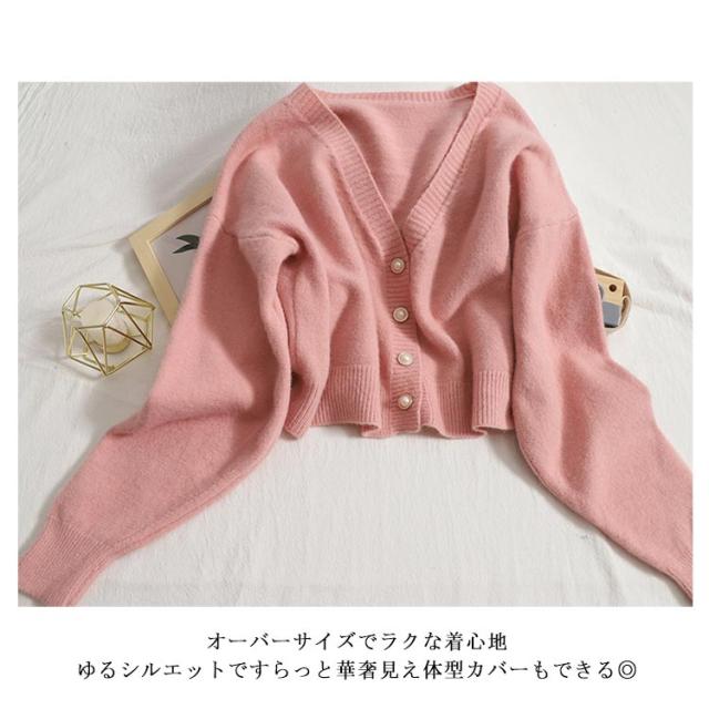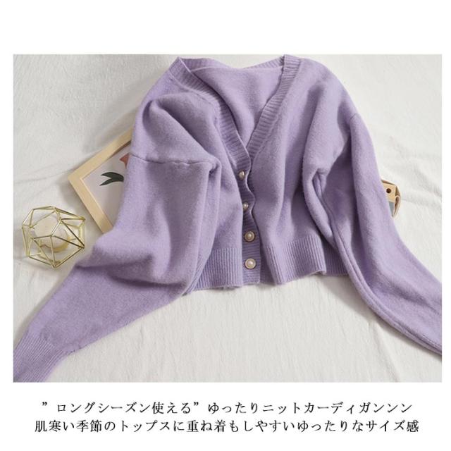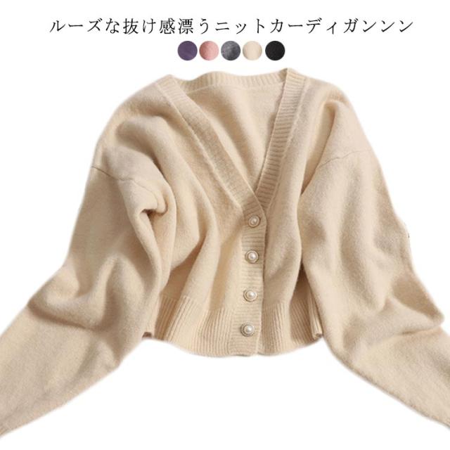 ニットカーディガンンン レディース 春秋 秋冬 セーター vネック アウター ドロップショルダー ニット生地 ビッグシルエット ボタンカーデ オーバーサイズ ショート丈 羽織り あったか 可愛い お洒落 シンプル カジュアル 女性用 大人