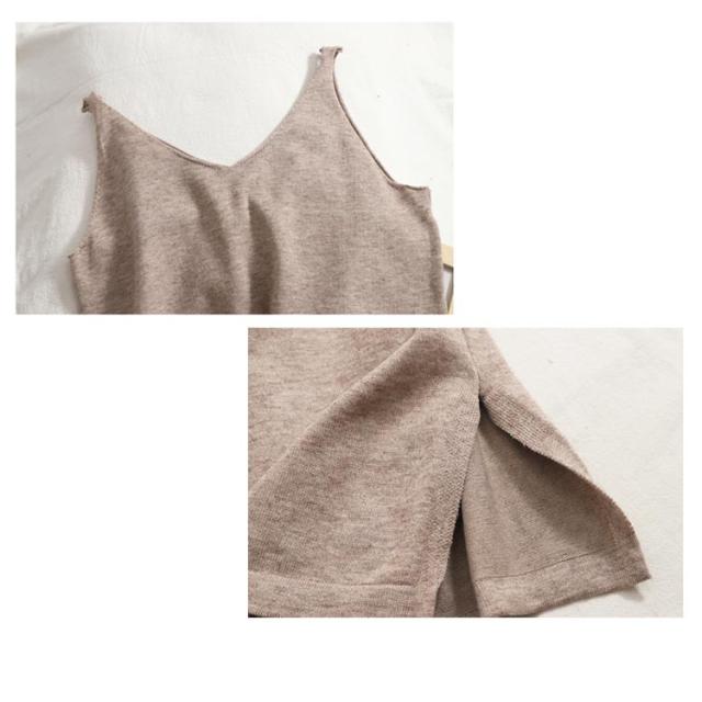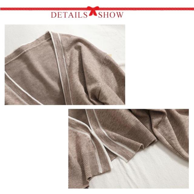| 配色が大人っぽいワンピースとカーディガンのセット。 キャミソールのニットワンピースは1枚でさらりと着ても上品に決まります。 もちろん別々に着回しもできる、かなり使えるセットアップです。 | |