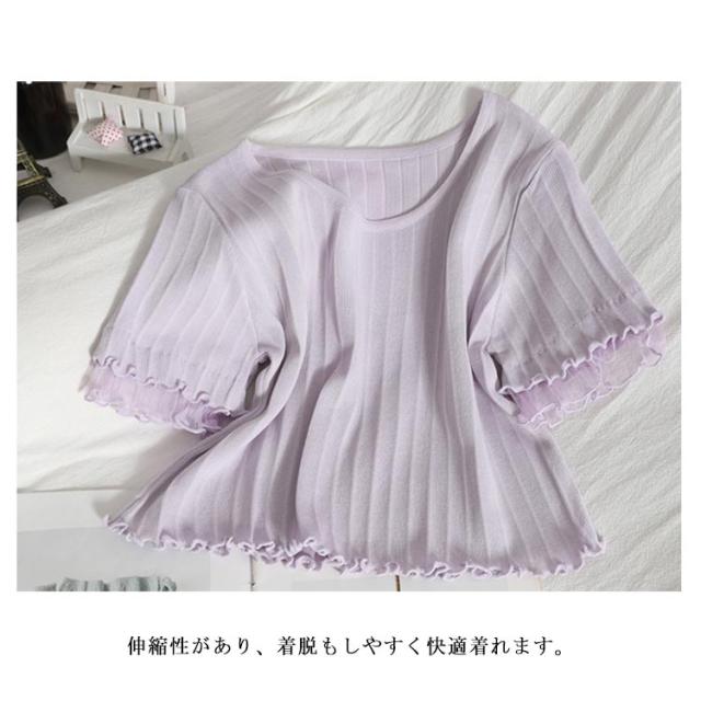 送料無料 サマー ニット ランドネック レディース リブ編み スリム タイト 女性 着痩せ 大人 可愛い サマーニット トップス 春夏 カシュクール カットソー 半袖 エレガント オフィス フォーマル ニット きれいめ 大人