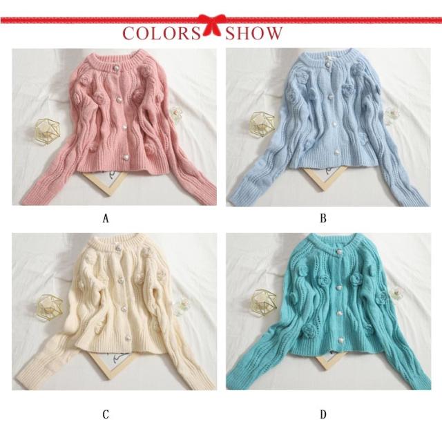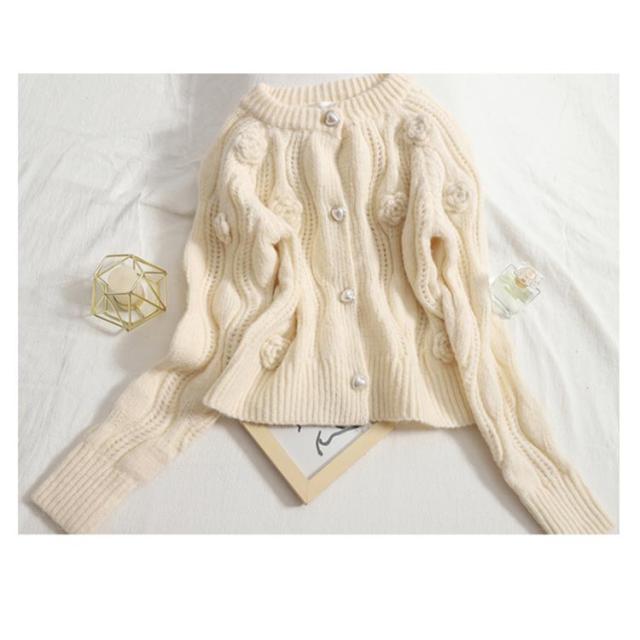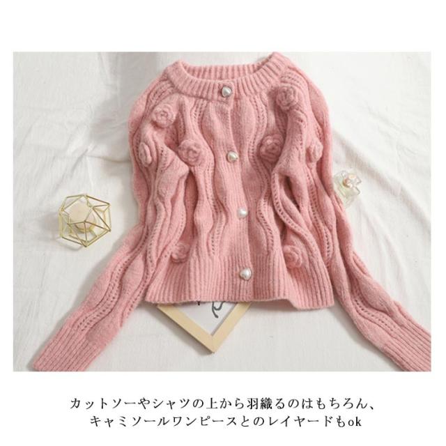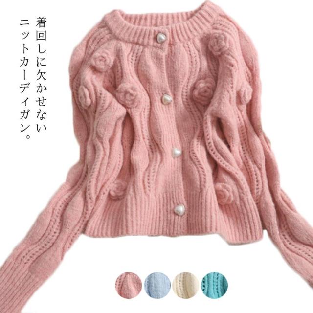 ニットカーディガン レディース 長袖 セーター ランドネック ケーブル編み 花柄 前開き 羽織 秋冬 春 ゆったり トップス 大人 おしゃれ きれいめ 高校生 20代 30代 ギフト プレゼント 送料無料