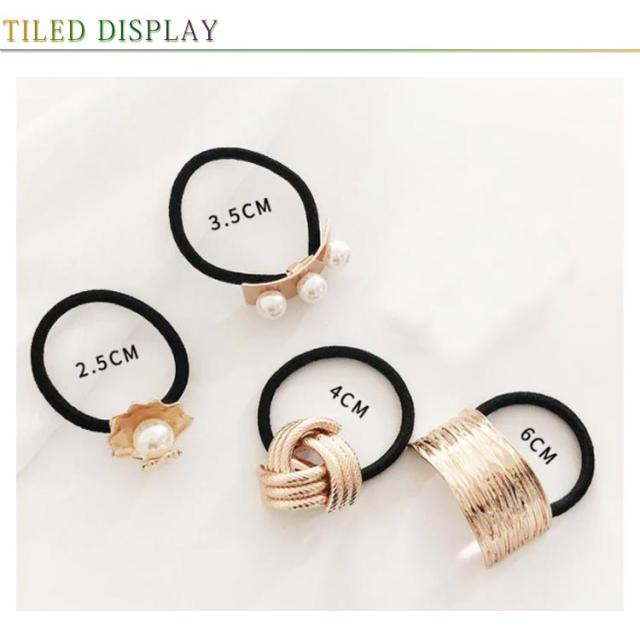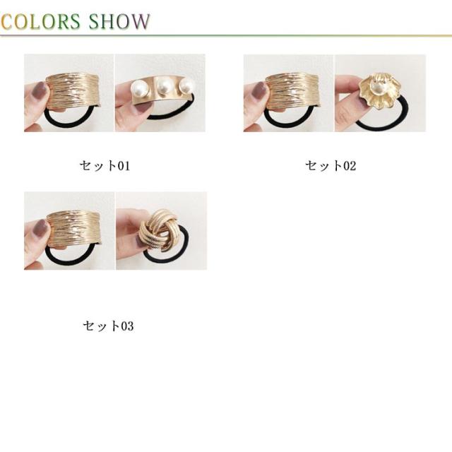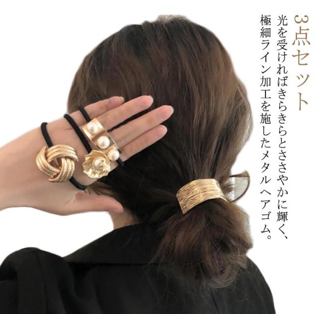 ヘアゴム ヘアアクセサリー レディース 3点セット メタルプレート ゴールド シルバー パール 送料無料 小物 ファッション雑貨 大人 プレゼント 大人っぽい 春 夏 秋 オフィス ギフト
