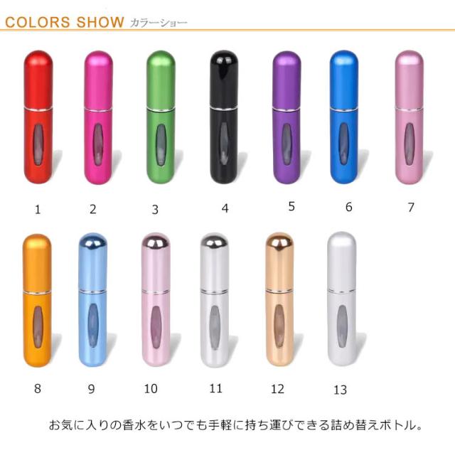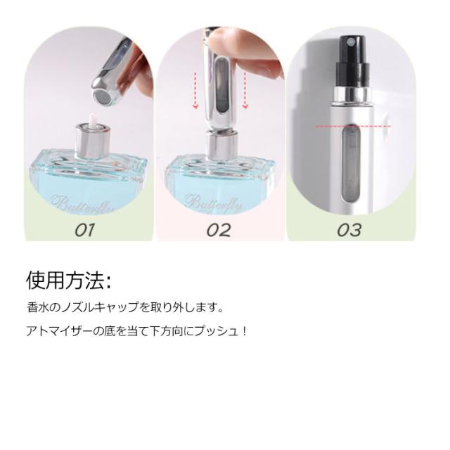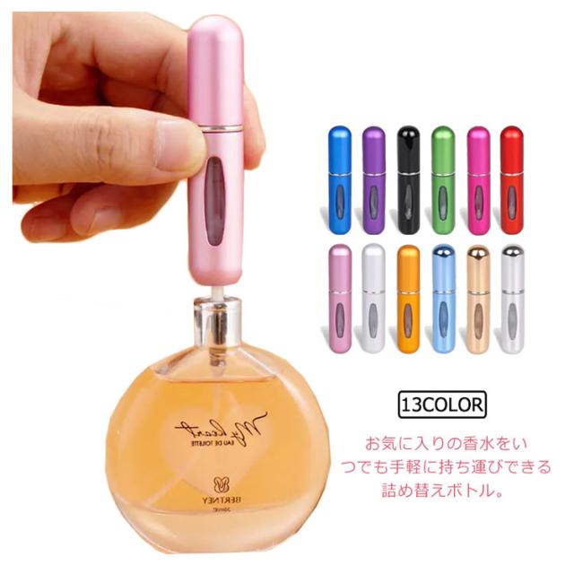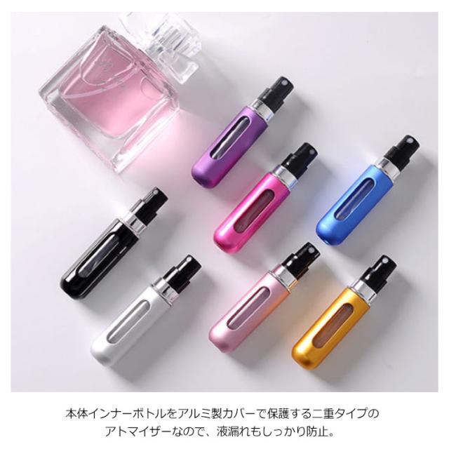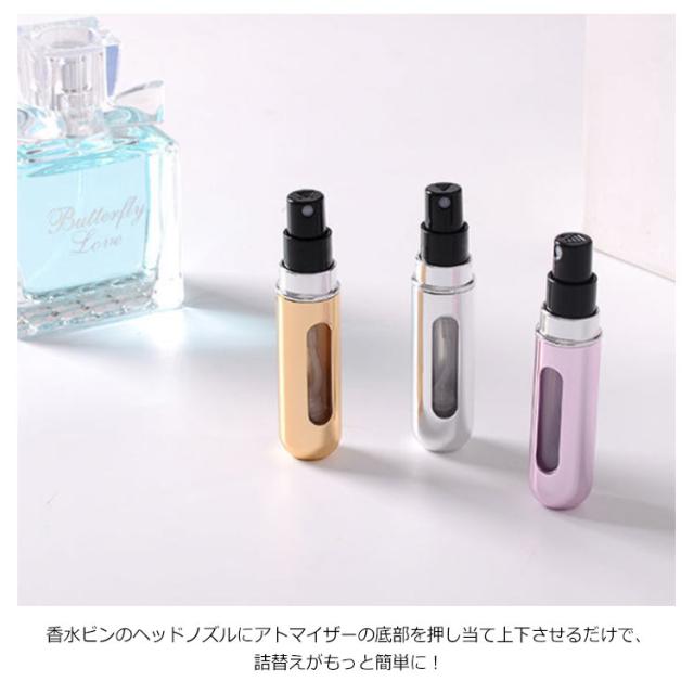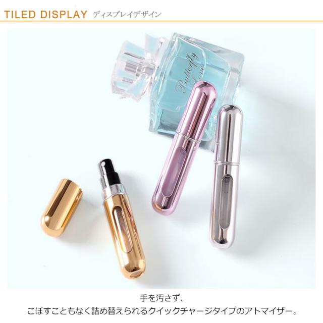 アトマイザー 香水 詰め替えボトル 5ml クイックチャージタイプ 携帯用 香水 ミニボトル クイックアトマイザー スプレー ミスト 霧噴射 ワンプッシュ 香水瓶 詰め替え簡単 コンパクト 消毒液 アルコール対応 オシャレ かわいい 高級感 旅行 レディース メンズ