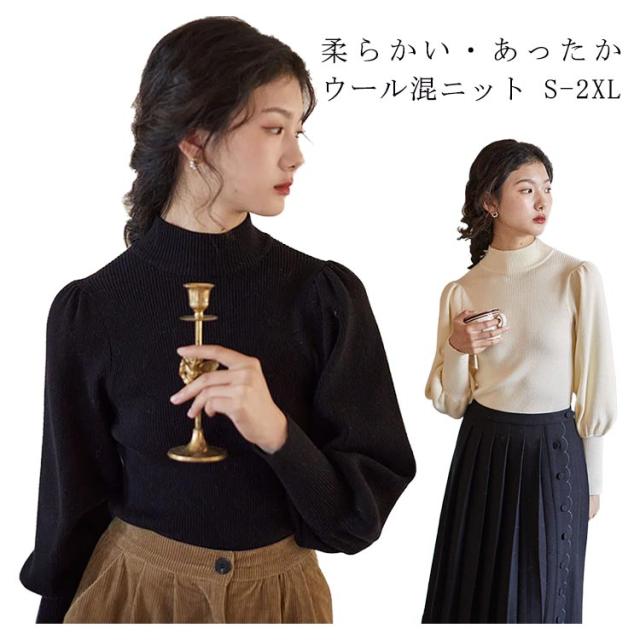 ニット セーター ウール混 レディース トップス 長袖 秋冬 ハイネックセーター おしゃれ 無地 ショート丈 ウールニット フォーマル カジュアル リブセーター 防寒 暖かい 綺麗に 柔らかい 春