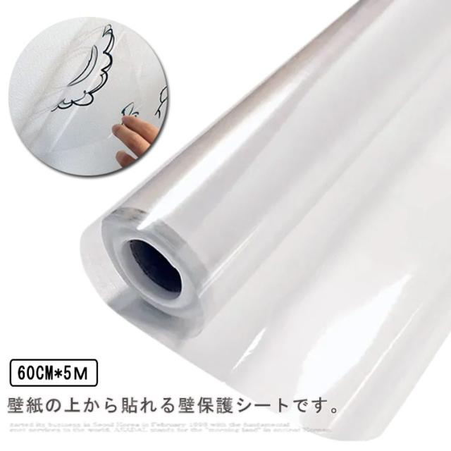 壁保護シート 60cm*5m 壁に貼る 傷防止 汚れ防止 爪とぎ防止 透明 壁紙 貼ってはがせる 保護フィルム ウォールステッカー キズ 汚れ対策 家具保護シート 貼るだけ 落書き対策 接着剤不要 はがせる 賃貸OK 目立たない