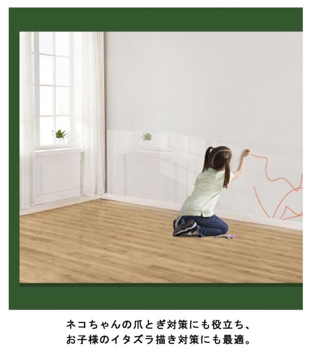 | 壁紙の上から貼れる壁保護シートです。 壁や家具、窓にあらかじめ貼っておくことで、汚れや傷などから保護するシートです。 ネコちゃんの爪とぎ対策にも役立ち、お子様のイタズラ描き対策にも最適。 目立たない透明タイプのシートですので、インテリアの邪魔をしません。 シートについた汚れはタオルなどでサッと拭き取ることができるので、掃除も簡単です。 貼る手順: 1)最初に貼れる壁かどうかご確認ください。 2)貼る面のほこりや油分などの汚れを取り除きます。 3)シートを貼りたい面に合わせてカットします。(裏面にマス目があります。) 4)壁に貼っていきます。 5)余分な部分をカットし、最後にタオルなどで上から再度圧着します。 ○貼れる面:ビニール壁紙・プリント合板・ベニヤ板 ×貼れない面:土壁・砂壁・せんい壁などの和壁・コンクリート・モルタル・織物壁紙・紙壁紙・表面強化や汚れ防止など表面加工壁紙 | |