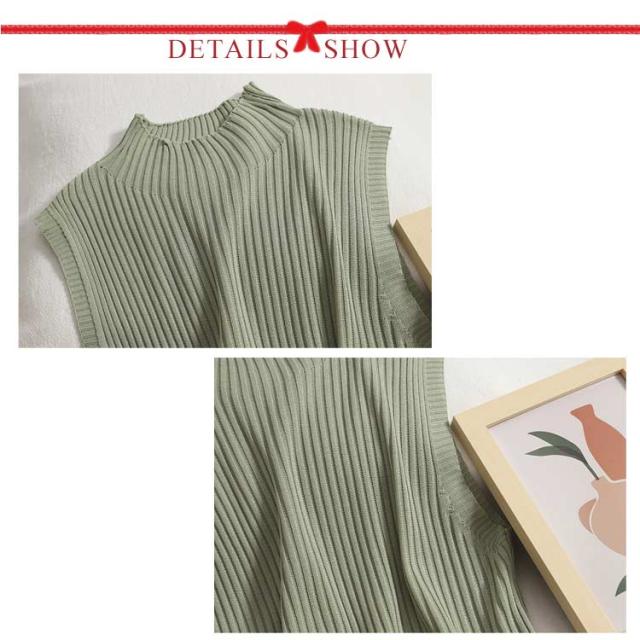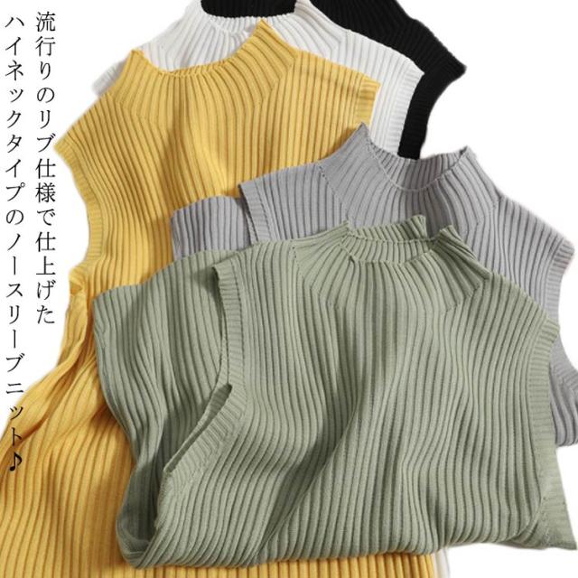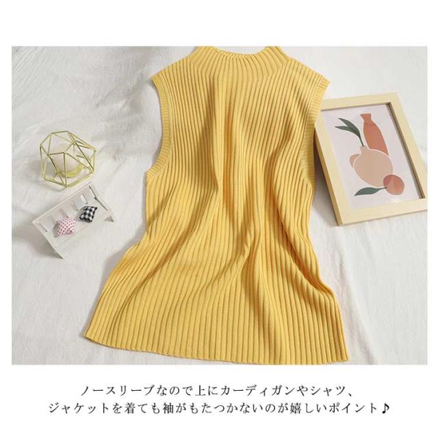 リブニット ノースリーブ トップス レディース ニット タンクトップ 重ね着 サマーニット タートルネック ノースリーブ タンク レイヤード ニットベスト レイヤード風 ニットタンクトップ 送料無料