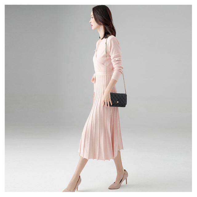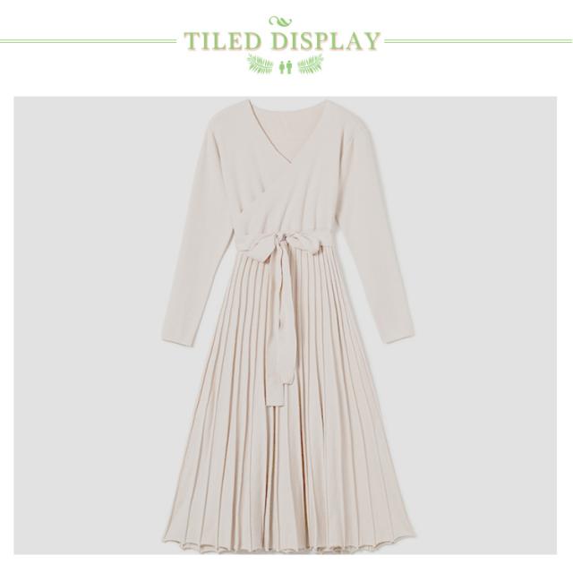 | タイト過ぎゆる過ぎない、女性らしいエレガントなシルエット。 Vネックで顔周りがスッキリ見えます。 プリーツの縦ラインでボディーラインをスッキリ見せ。 細かいプリーツデザインとカシュクールネックがクラシックムード漂う。 ニットが生み出す優しいフィット感はキレイなボディラインをメイク。 ロング丈で気になる体型をすっぽりカバーしてくれます 。 1枚で完成するから、コーデに悩まない。 | |