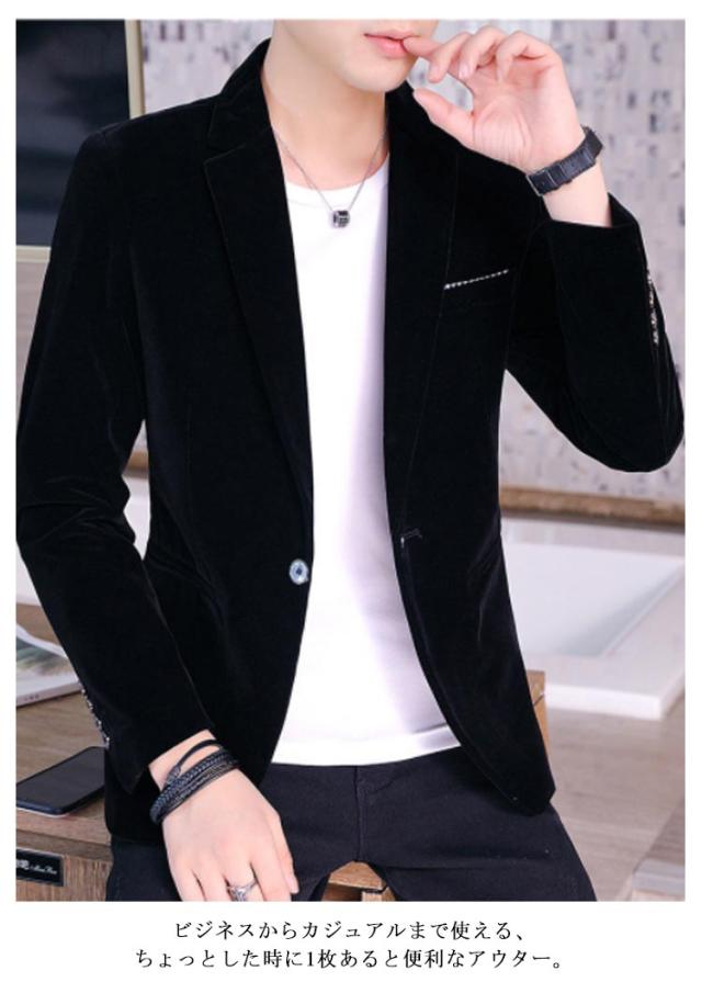 ベロアテーラードジャケット スリムジャケット メンズ ブレザー ベロア メンズブレザー カジュアルジャケット 細身 春 秋 冬 アウター 紳士 厚手 ビジネス カジュアル