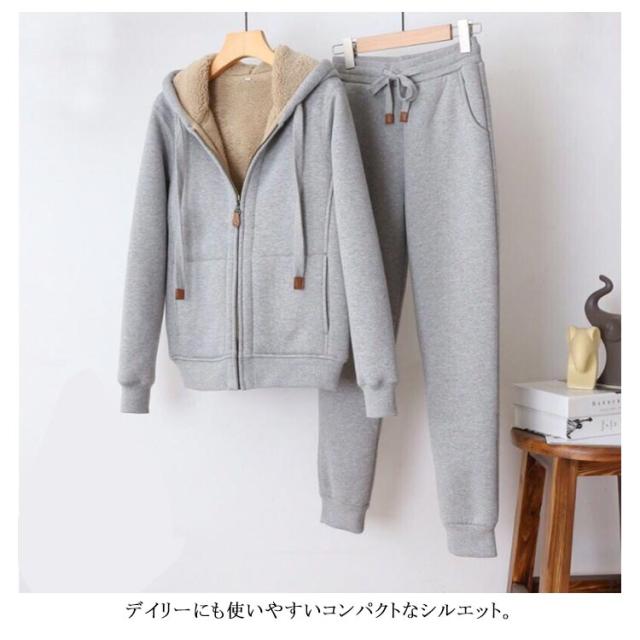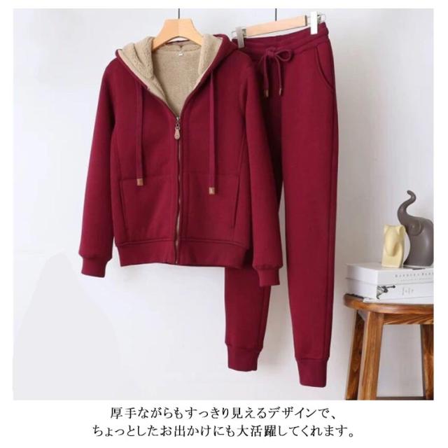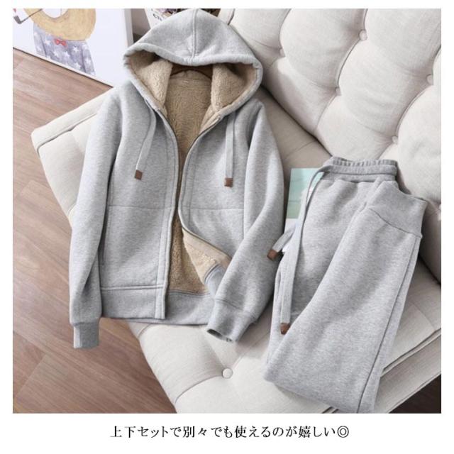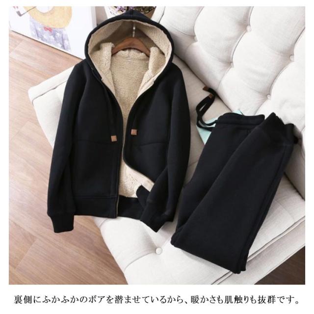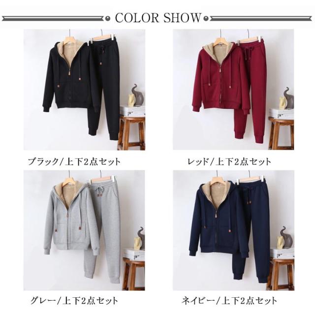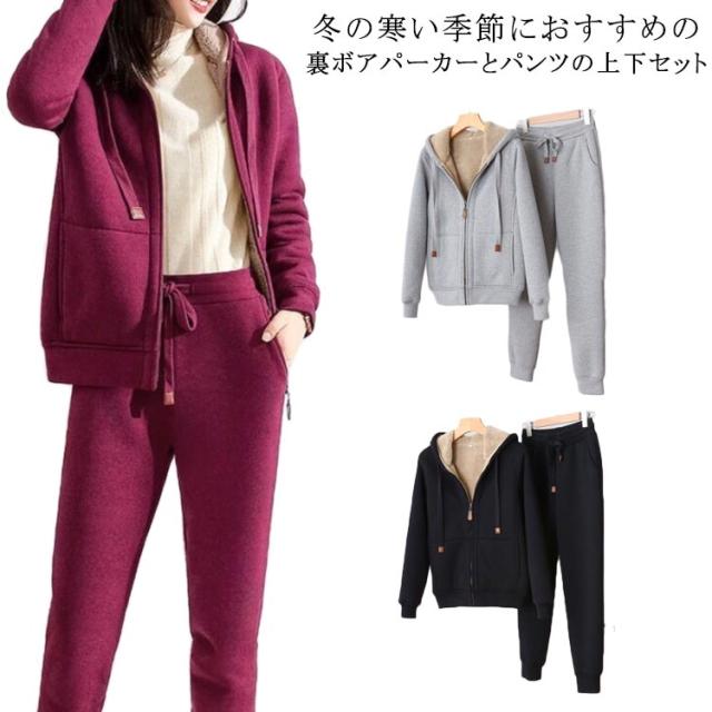 裏ボア スウェット 上下2点セット セットアップ 裏起毛 ジップアップパーカー スウェットパンツ レディース 厚手 長袖 フード付き ポケット付き スポーツ ルームウェア カジュアル 女性 冬 無地 全4色