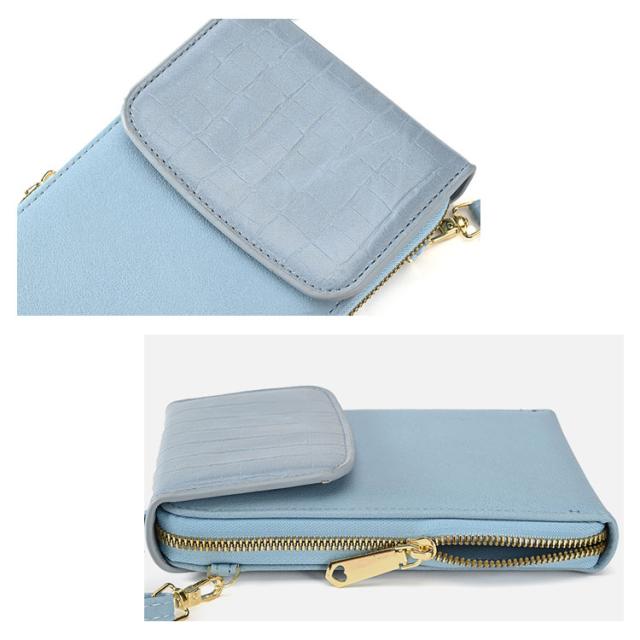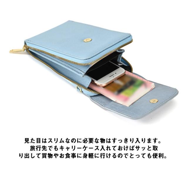 | ◆お財布とスマホケースが1つになった肩掛けスマホポーチ。見た目はスリムなのに必要な物はすっきり入ります。旅行先でもキャリーケース入れておけばサッと取り出して買物やお食事に身軽に行けるのでとっても便利。 ◆タッチパネルに対応でスマホを出さずにそのまま操作可能。 ◆ 斜めがけのショルダータイプですのでお子様のいるママさんも両手が自由に使えて安心です。ショルダーストラップは肩に優しい柔らかい素材を使っていますので長時間さげていでも負担になりません。 ◆ バッグのフロントには小物が収納しやすい便利なポケットが付いています。カードやリップなどを入れるのに最適。キャッシュやカードは最小限、電子マネーやアプリでお財布レスの時代にぴったりのポーチです | |