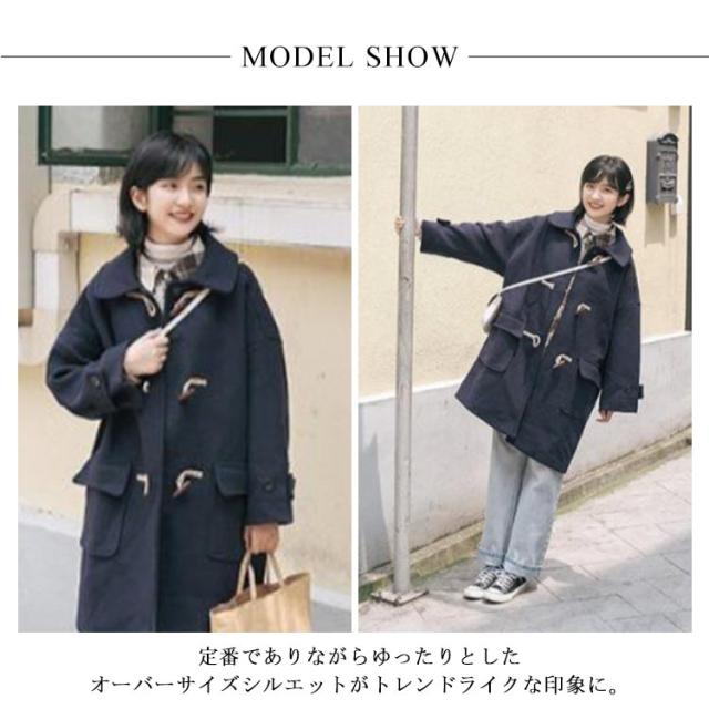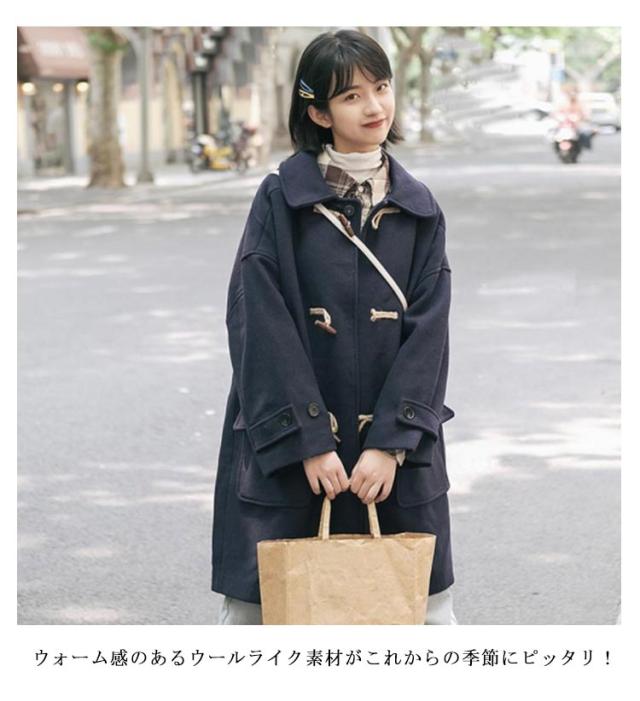 | 冬の定番アイテムのダッフルコート。裏キルティング入りであたっか! 定番でありながらゆったりとしたオーバーサイズシルエットがトレンドライクな印象に。 厚手のトップスの上からでも羽織りやすいのも嬉しい魅力です。 ウォーム感のあるウールライク素材がこれからの季節にピッタリ! また裏地はキルティングで温かく着ていただけます。 温かみのあるスクールコートとしても普段着にも使いやすいダッフルコート! | |