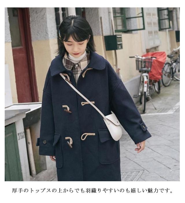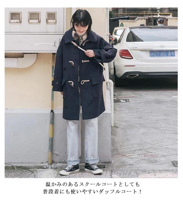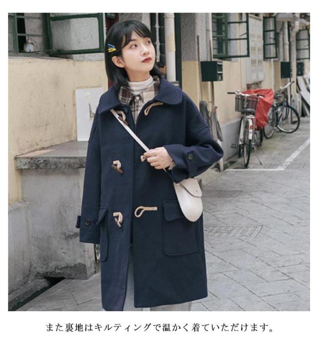 【送料無料】ダッフルコート スクールコート 学生 制服 コート ステンカラー ロングコート 膝丈 厚手 中綿入り オーバーサイズ 秋冬 アウター 防寒 防風 通勤 通学 学生服 女子 高校生 レディース 着回し ネイビー 紺