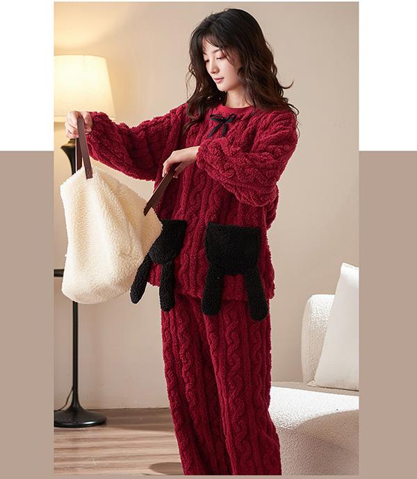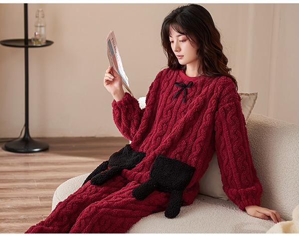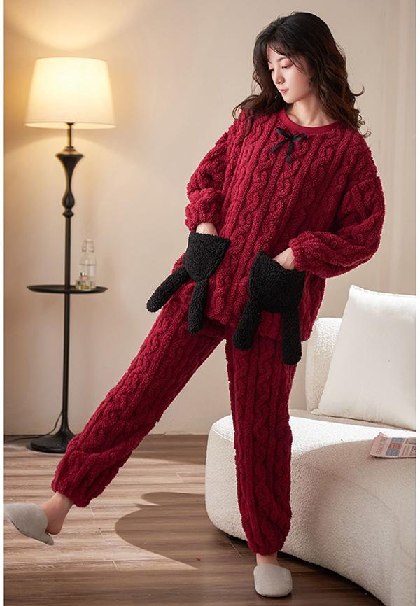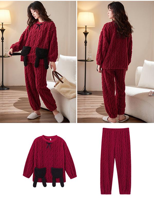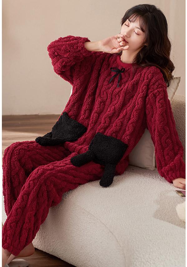 パジャマ レディース 冬 上下セット ルームウェア かわいい ナイトウェア 着る毛布 裏起毛 あったかい 厚手 ゆったり 可愛い 部屋着 秋冬 大きいサイズ ワインレッド M L 2L 3L