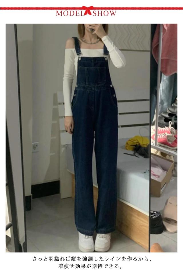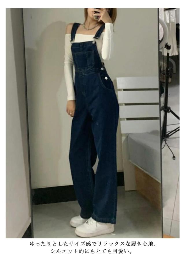 オールインワン サロペット デニム ロングパンツ レディース オーバーオール サスペンダーパンツ ゆったり 体型カバー 送料無料 カジュアル ゆったり レトロ お洒落