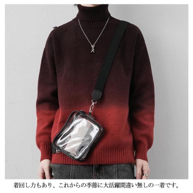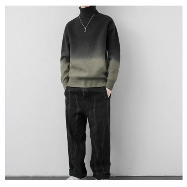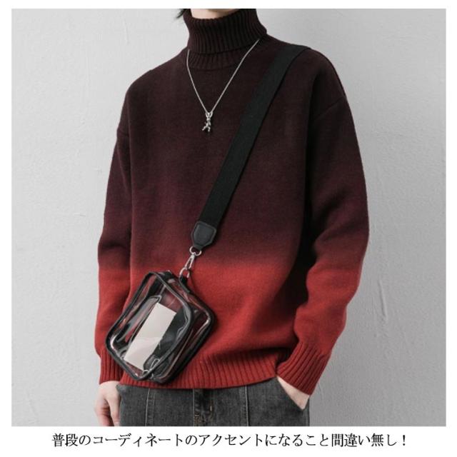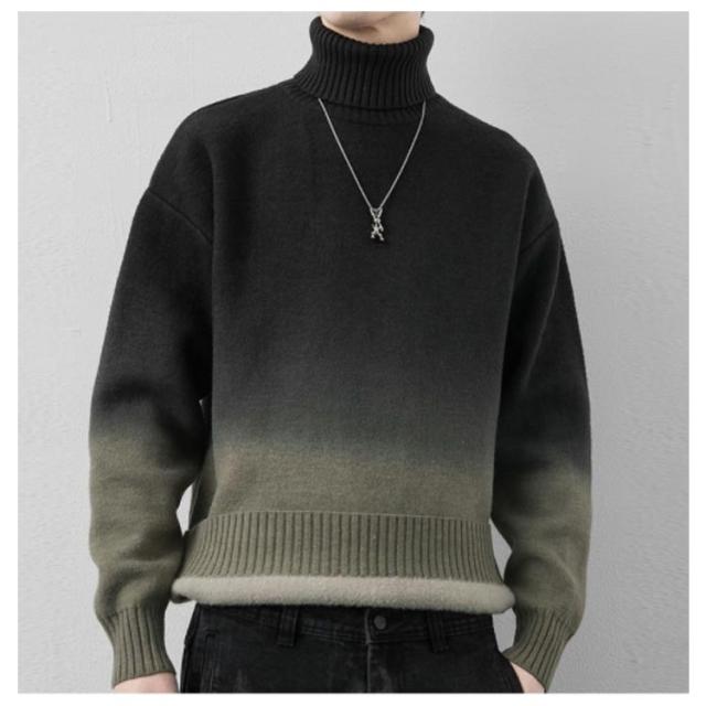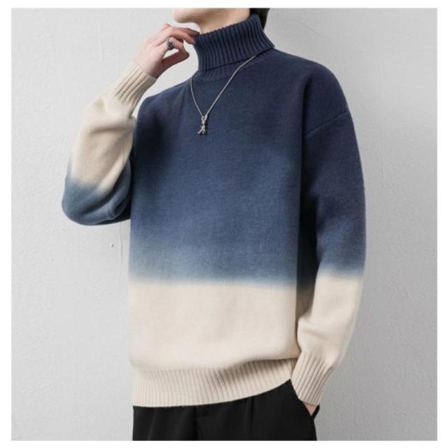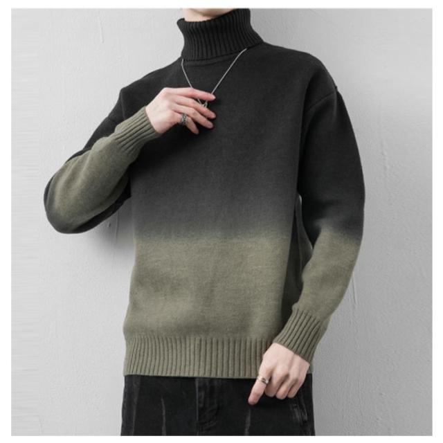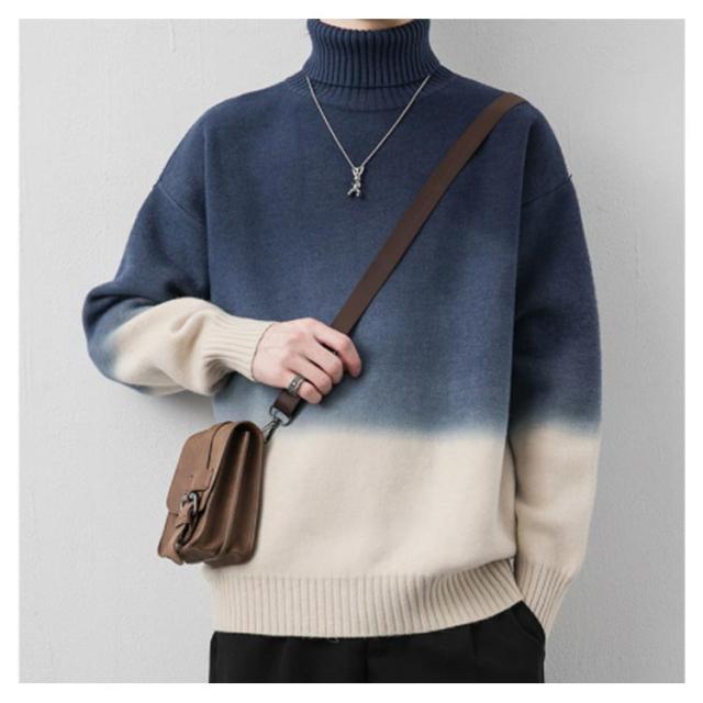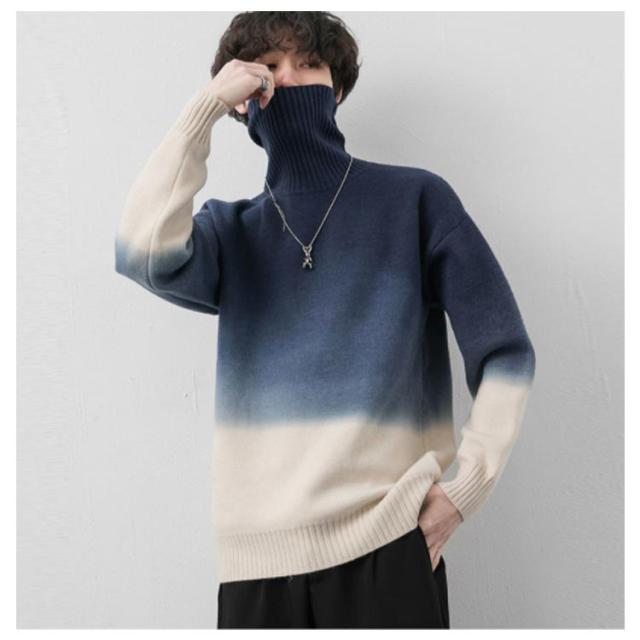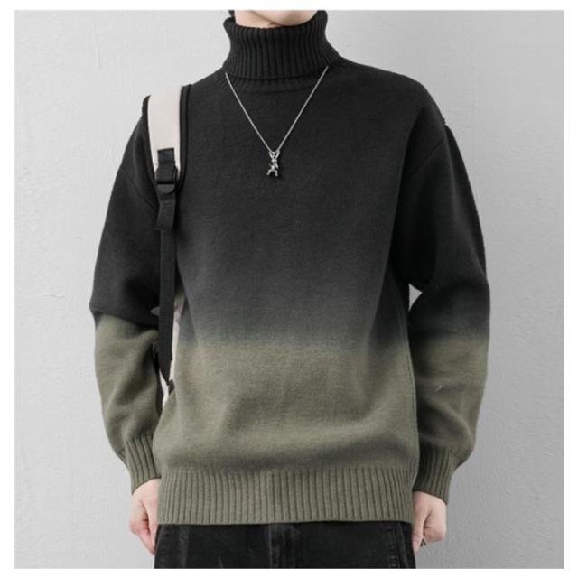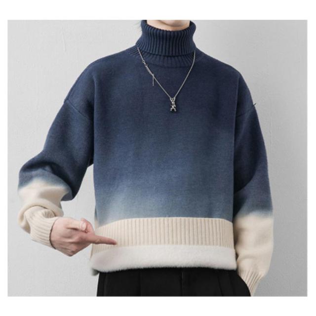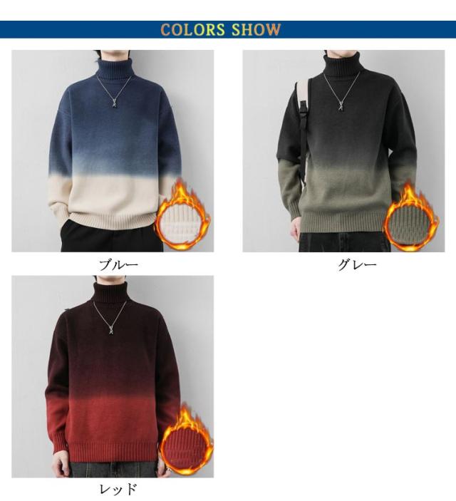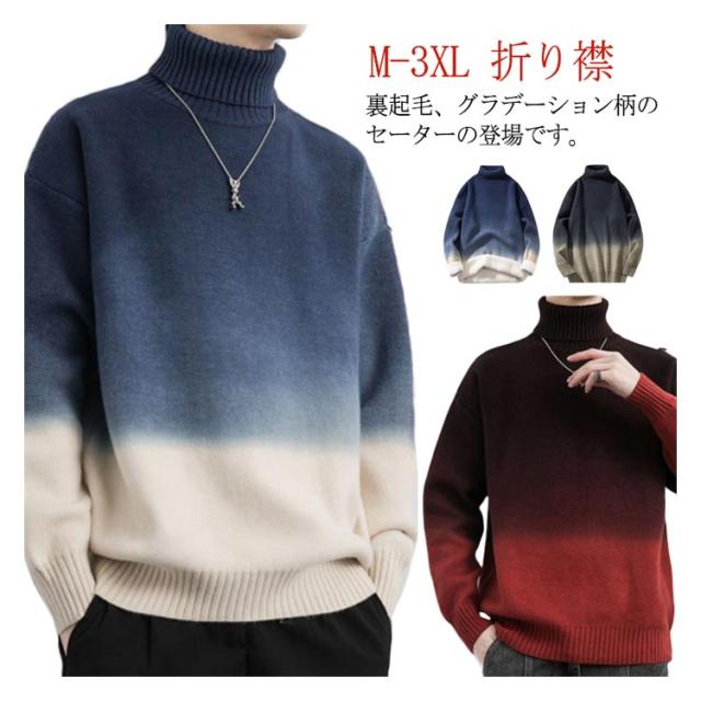 グラデーション セーター メンズ ニットセーター ニットトップス 長袖 タートルネック ハイネック トップス プルオーバー 折り襟 裏起毛 厚手 防寒 あったか 秋服 冬服 M L XL 2XL 3XL