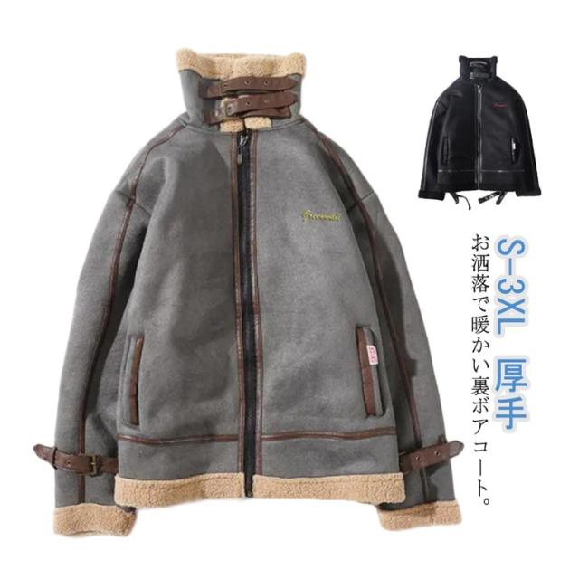 ムートンジャケット メンズ レザー 裏起毛 ボアジャケット ジャケット スタンドカラー フェイクレザー フェイクムートン ブルゾン ライダースジャケット 厚手 防寒 裏ボア メンズアウター 冬服 秋冬 ショート丈 カジュアル 保温 S M L XL 2XL 3XL