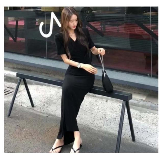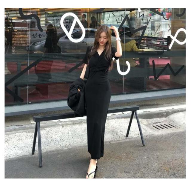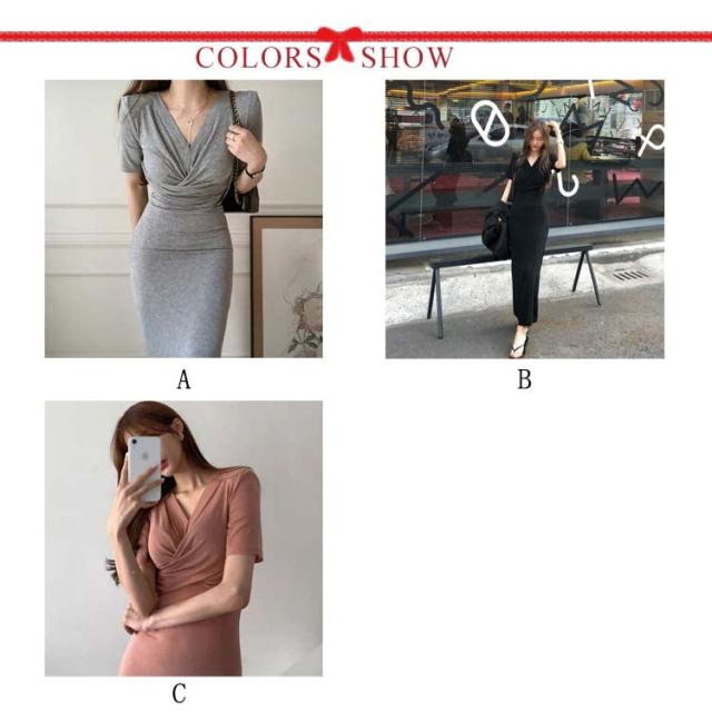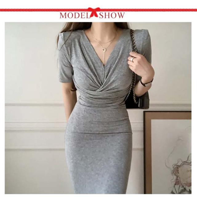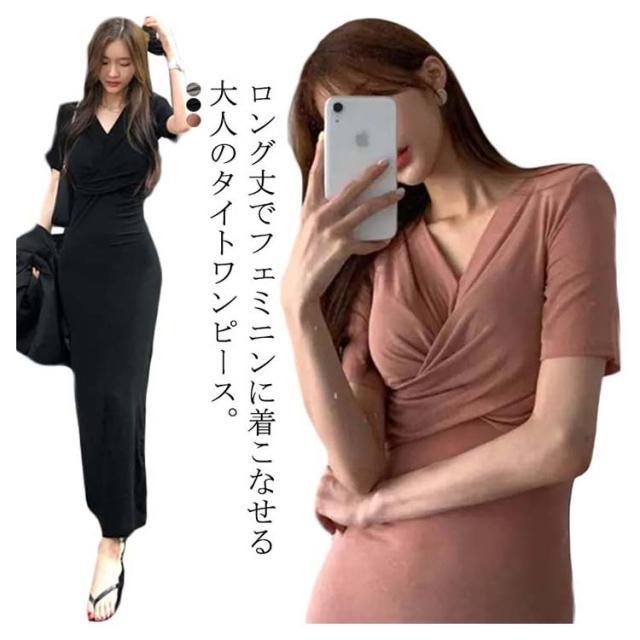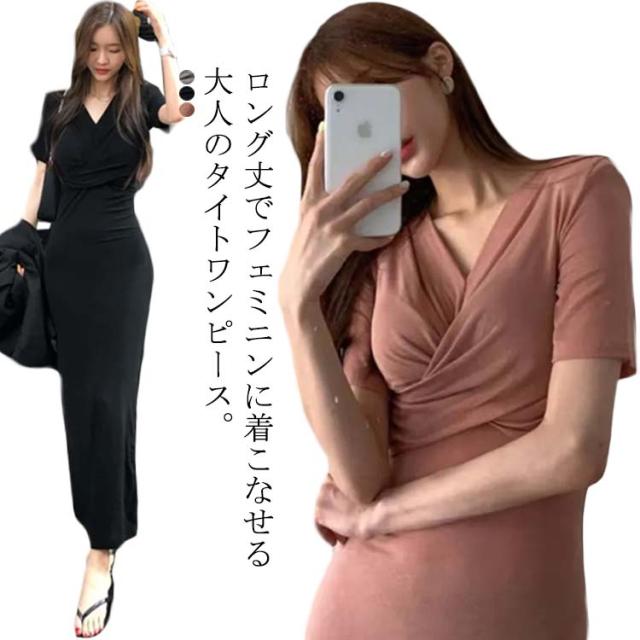 ワンピース レディース ロング丈ワンピース ミモレ丈 ワンピ 半袖 Vネック タイトワンピース スリムワンピース Tシャツワンピース 薄手 フィット 着痩せ フェミニン おしゃれ シンプル カジュアル 春 夏 秋