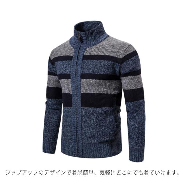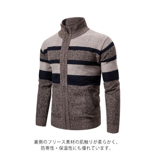 メンズ カーディガン ニットカーディガン アウター 羽織り 長袖 ジップアップ 裏地付き 厚手 防寒 暖かい 男性用 大きいサイズ 春秋冬 カジュアル お洒落 送料無料