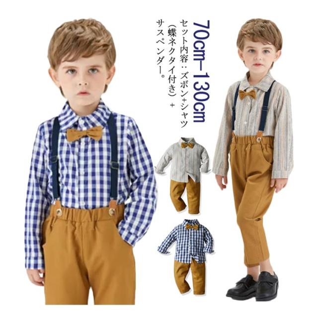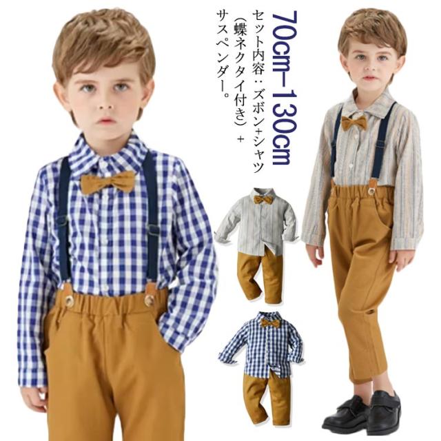 3点セット 男の子 フォーマルスーツ 子供服 フォーマルスーツ フォーマル 長袖 春 秋 冬 キッズスーツ ベビー フォーマル ワイシャツ 子供スーツセット サロペット 上下セット ストライブ柄 チェック柄 入学式 卒業式 送料無料 70-130cm