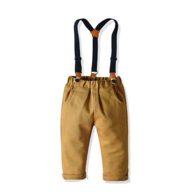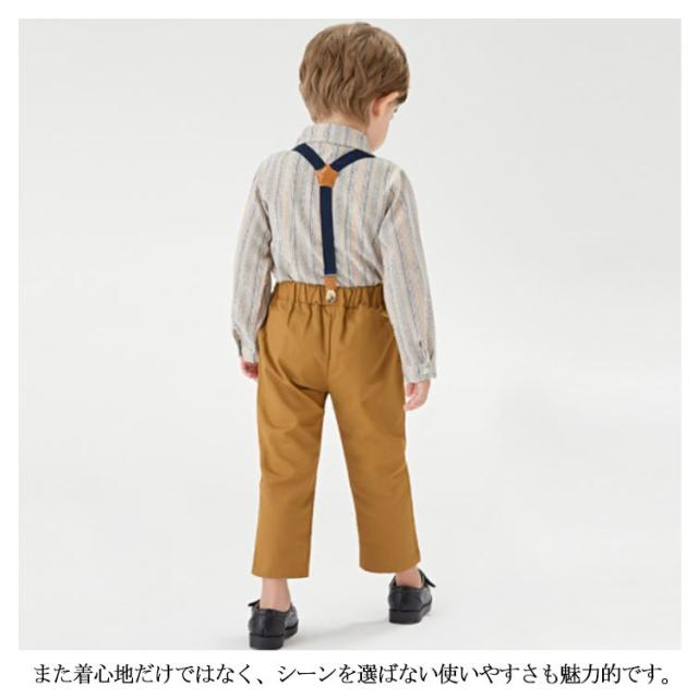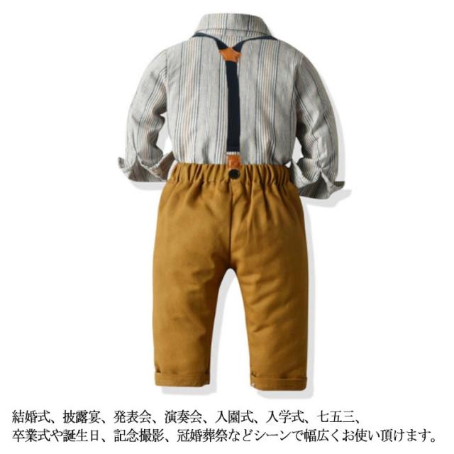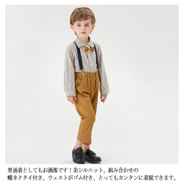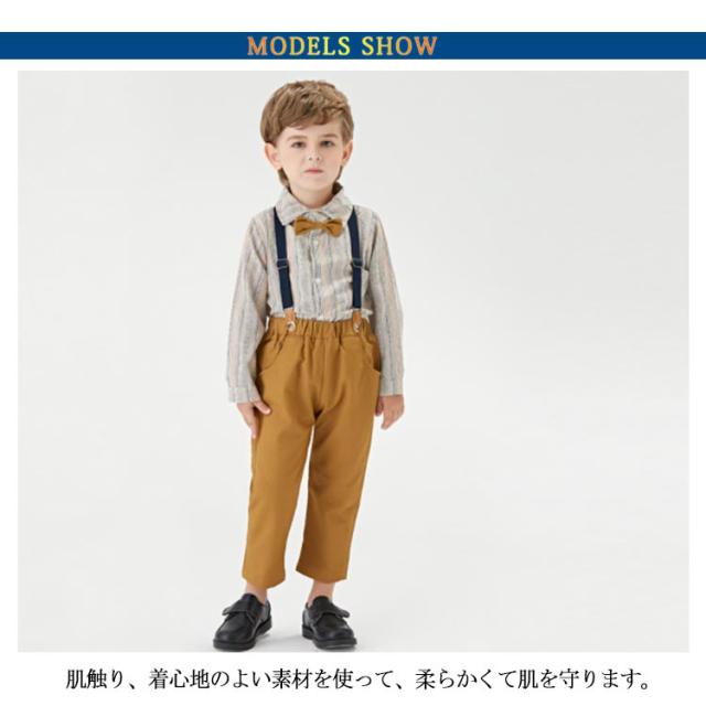 | セット内容:ズボン+シャツ(蝶ネクタイ付き)+サスペンダー。 肌触り、着心地のよい素材を使って、柔らかくて肌を守ります。また着心地だけではなく、シーンを選ばない使いやすさも魅力的です。 普通着としてもお洒落です!美シルエット、組み合わせの蝶ネクタイ付き、ウェストがゴム付き、とってもカンタンに着脱できます。 結婚式、披露宴、発表会、演奏会、入園式、入学式、七五三、卒業式や誕生日、記念撮影、冠婚葬祭などシーンで幅広くお使い頂けます。 | |