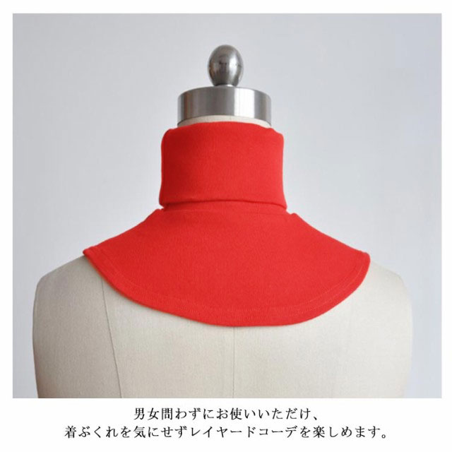 | 普段のトップスにプラスするだけでコーデの幅が広がる、 タートルネックタイプのつけ襟♪ おしゃれしながら首まわりの防寒にもなる、 寒い季節に嬉しいアイテムです 男女問わずにお使いいただけ、着ぶくれを気にせずレイヤードコーデを楽しめます。 | |