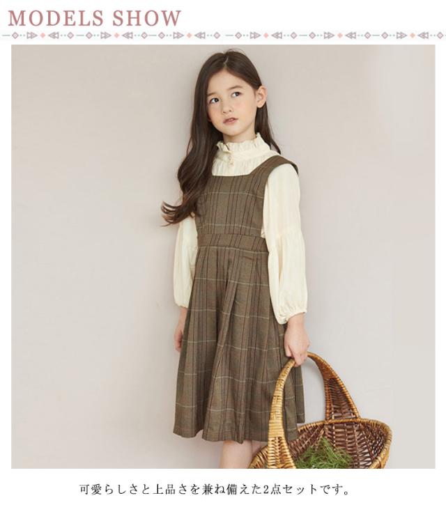 | サイズについての説明 | 110 ワンピース丈85cm バスト83cm 袖丈45cm ウエスト58cm ブラウスの着丈45cm 120 ワンピース丈89cm バスト87cm 袖丈48.5cm ウエスト60cm ブラウスの着丈48cm 130 ワンピース丈93cm バスト90cm 袖丈52cm ウエスト62cm ブラウスの着丈51cm 140 ワンピース丈97cm バスト94cm 袖丈55.5cm ウエスト64cm ブラウスの着丈54cm 150 ワンピース丈101cm バスト96cm 袖丈59cm ウエスト66cm ブラウスの着丈57cm 160 ワンピース丈103cm バスト100cm 袖丈62.5cm ウエスト68cm ブラウスの着丈60cm ※上記サイズは平置き実寸になります。 サイズ表の実寸法は商品によって1-3cm程度の誤差がある場合がございます。 |