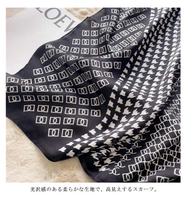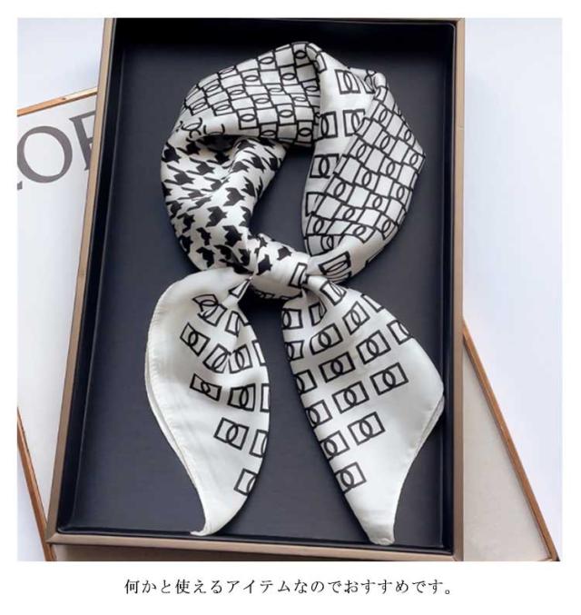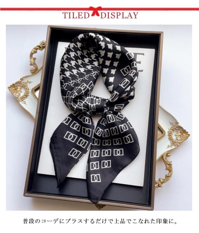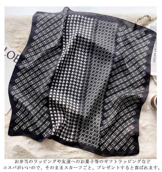 | デイリー使いしやすい大判サイズのスカーフ 光沢感のある柔らかな生地で、高見えするスカーフ。 普段のコーデにプラスするだけで上品でこなれた印象に。 首元やバッグ、ヘアアクセサリーとしてなど様々なアレンジが楽しめます。 お弁当のラッピングや友達へのお菓子等のギフトラッピングなどコスパがいいので、そのままスカーフごと、プレゼントすると喜ばれます。何かと使えるアイテムなのでおすすめです。 ◇コーディネート◇ シンプルコーデとの相性抜群な、巻くだけでこなれ感たっぷりなスタイルを演出できるアイテム。 ヘアアクセサリーやバッグアクセサリーとしてなど幅広いアイテムとのアレンジが楽しめます。 | |