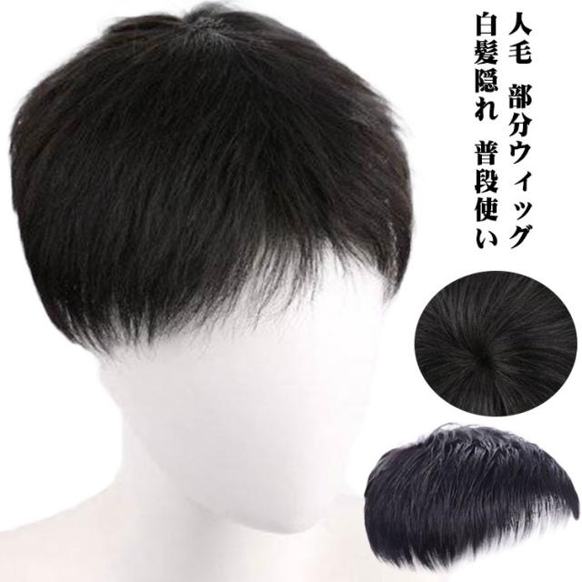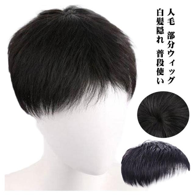 メンズ用 人毛 トップカバー 部分ウィッグ メンズウィッグ ヘアピース 男性用 紳士用 白髪 薄毛 円型脱毛症 トップピース 頭頂部 増毛 部分かつら 送料無料 男性用ウィッグ ショート ヘアピース メンズウィッグ 薄毛 白髪隠れ トップカバー 普段使い