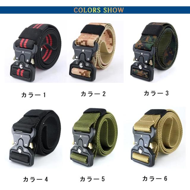 送料無料 ベルト メンズ ワンタッチ カモフラージュ柄 タクティカルベルト ナイロンベルト ミリタリー バックル 装備 作業用 サバイバルゲーム アウトドア DIY ネイビー グリーン ブラック ブラック 125cm