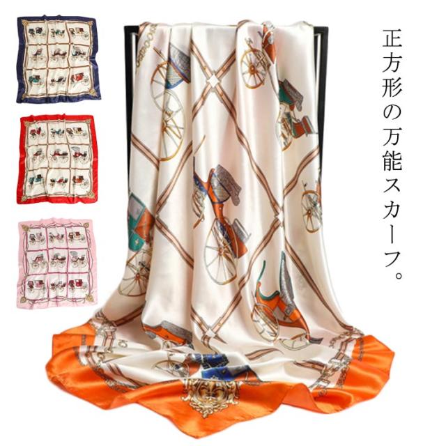 大判 正方形 スカーフ 90cm レディース ストール シルク調 ハンダナスカーフ ヘアクセサリー バッグチャーム バッグスカーフ 母の日ギフト 母の日プレゼント