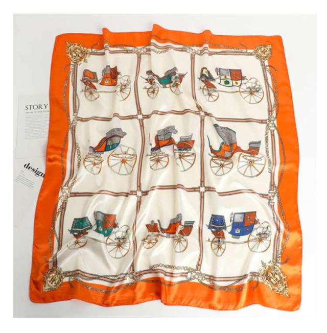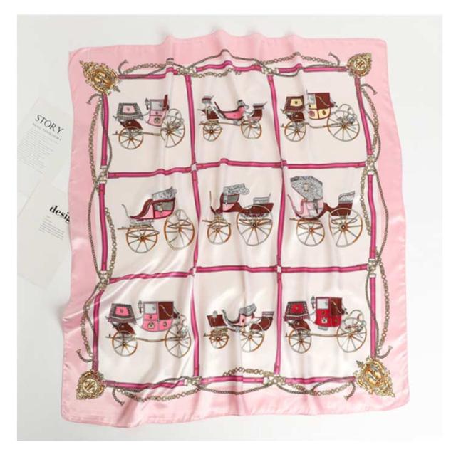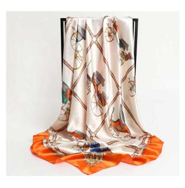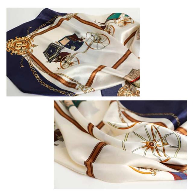 | 正方形の万能スカーフ。 バッグの持ち手に巻きつけたり、リボンやターバンにしたり、バンダナやヘアバンドとして使ったりと使い回し自由自在! 大判なのでストール・ショールのように使えます。 ツヤと光沢のある滑らかな生地です。 | |