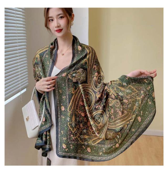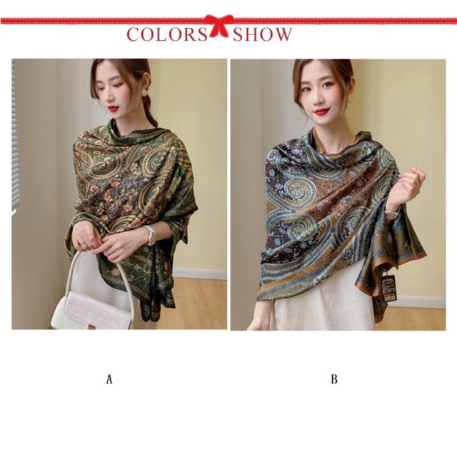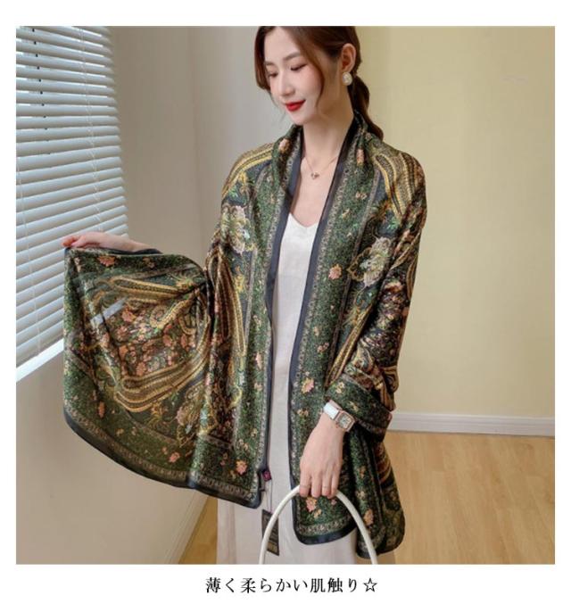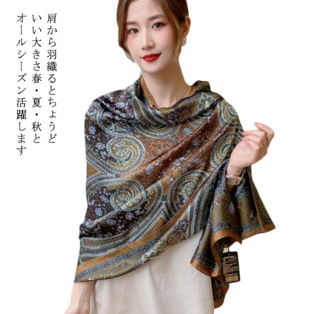 シルク タッチ 大判 スカーフ 総柄 バンダナ柄 ペイズリー 正方形 レディース 180×90cm 春 夏 秋 冬 用 サテン 生地 uv 接触冷感 日焼け対策 首 uvカット冷房対策 母の日プレゼント 母の日 プレゼント 実用的