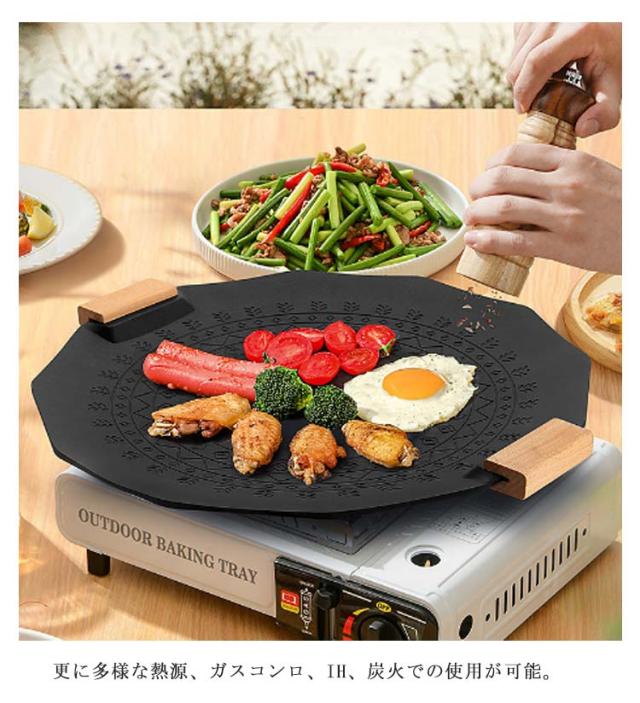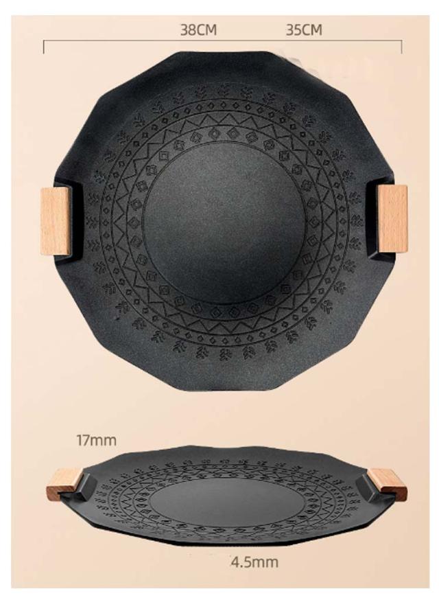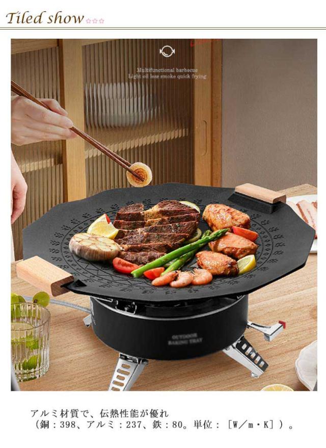 直径35CM グリドル 鉄板 丸型 韓国 グリル グリルパン ステーキ 焼肉 プレート BBQ バーベキュー キャンプ 丸型鉄板 焚火 IH ガスコンロ 直火 炭火 家庭用 アウトドア 登山 軽量