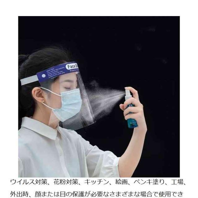 | オーバーマスクフェイスドお得な10枚セット☆ 保護ドは完全に顔を覆うことができるから、空気中の細菌、唾液、ほこり、花粉、発煙などから顔を守ってくれます。 防曇シート材料で作られており、曇らずとっても見えやすいのです。 着用時に頭の快適さを確保するために広い弾性バンドが後ろにあります。 頭のサイズに合わせて自由に調節可能、透明なドも上下移動で角度を調節できます。 軽量設計で長時間の装着でも疲れません。 、花粉対策、キッチン、絵画、ペンキ塗り、工場、外出時、顔または目の保護が必要なさまざまな場合で使用できる。 | |