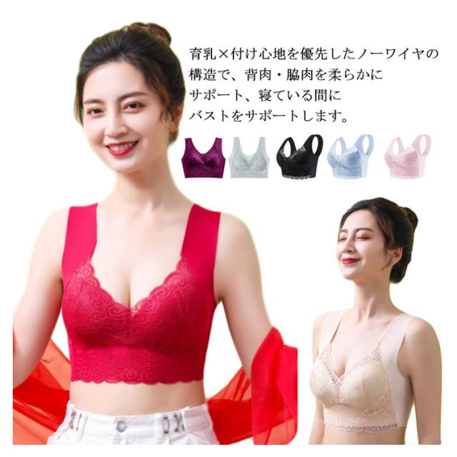 全8色×7サイズ!ブラ ブラジャー レースブラジャー ノンワイヤー ナイトブラ 脇肉 脇高ブラ 総レース 痛くない 育乳ブラ 谷間 育成 空気感 立体 弾力性