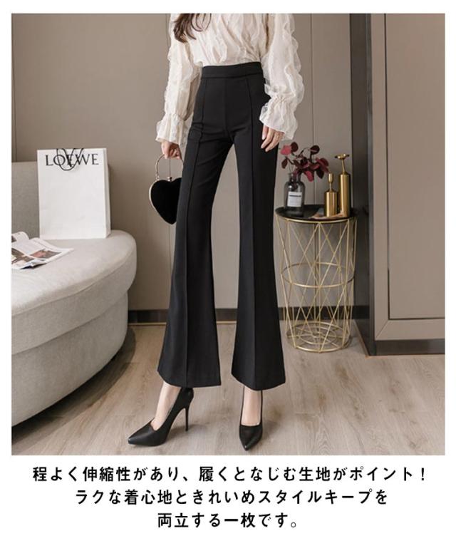 送料無料 ストレッチ フレアパンツ センタープレス ペンシルパンツ レディース パンツ スラックス 無地 ハイウエスト ウエストゴム ストレート ブーツカット ロングパンツ 美脚パンツ パンツドレス オフィスカジュアル 通勤